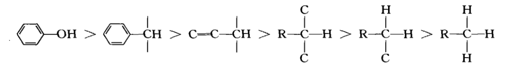 氢原子夺取的相对难易程度可按如下的次序排列: